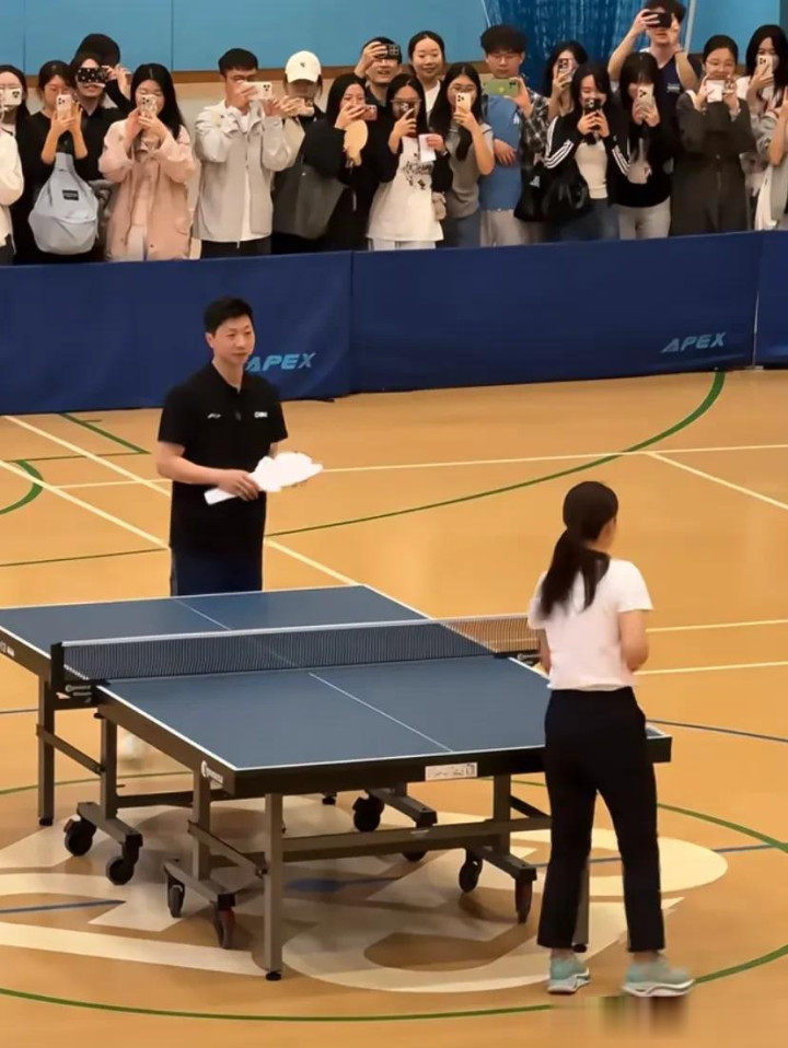 除了学生之外,郭晶晶和霍启刚也亲自上场和马龙打起了乒乓球,马龙还特地给他们放水,哈哈,这场球打的还是挺开心的。
