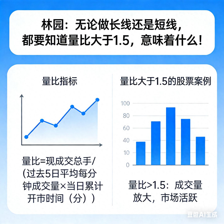 在A股市场深耕数十年、以价值投资与趋势把握见长的林园,多次在实战分享中强调一个核心观点:量能是市场的生命线,量比是量能最直观的晴雨表,不管长线布局还是短线操作,只要吃透量比大于1.5的真实含义,就能精准识别资金动向,抓住启动信号、避开诱多陷阱。这不是复杂的技术玄学,而是经过A股长期走势验证、贴合资金运行规律的实战逻辑,是普通投资者最容易掌握、最实用的盘口判断工具。本文基于林园实战思路、A股量能规律与历史回测数据,用大白话拆解量比大于1.5的底层逻辑、不同位置的信号意义、实操标准与风控纪律,全程不推荐个股、不诱导操作、严谨正向,帮你看懂资金语言,让长短线交易都更有底气。