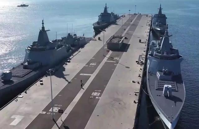 首先,从装备规模来看,4艘055同框意味着中国海军在大型水面作战舰艇的数量上达到了一个新的高度。